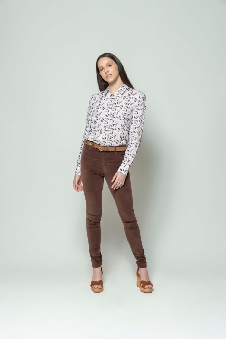 LYDIA Brown Feathers luxury viscose shirt